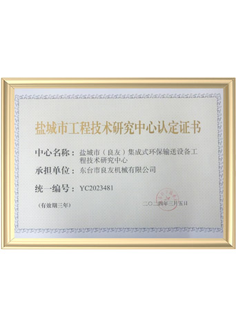 鹽城市工程技術(shù)研究中心認定證書